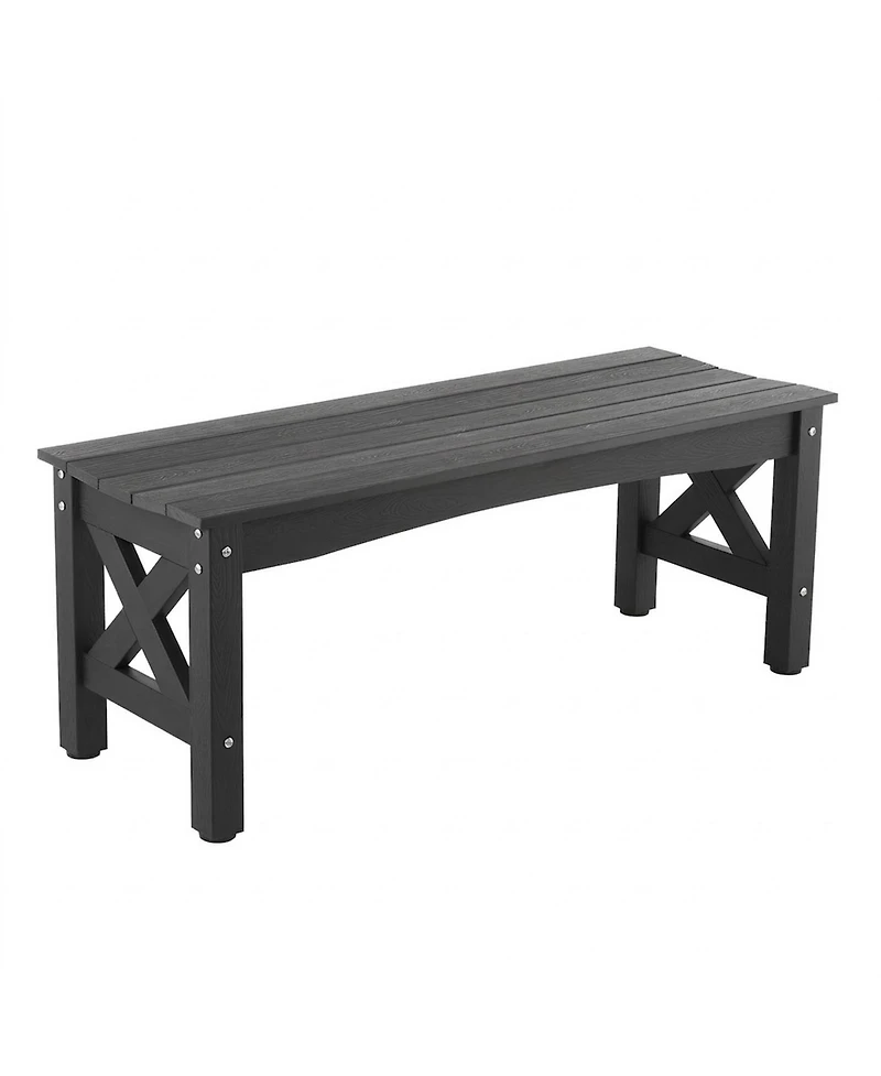 Equip your outdoor area with this 44.5-inch weatherproof plastic bench that delivers an impressive 600-lb weight capacity in a sleek design. Made from polystyrene, this outdoor bench measures 44.5 x 15.7 x 17.1 inches and includes adjustable footpads that level the seat on uneven ground. The thick reinforced legs provide a solid foundation at 34.2 lbs, resisting tipping even at full capacity. Weather-resistant material requires zero maintenance through every season.