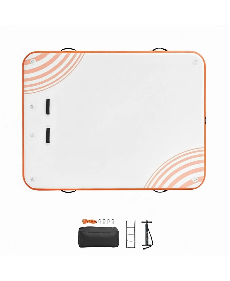 Gouun 8 x 6 Ft Inflatable Floating Dock Platform with Non-Slip Pvc Surface, Portable Water Dock with Ladder