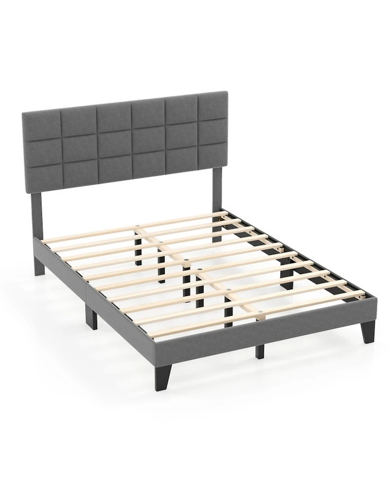 Gouun Rubberwood Platform Bed Frame with Headboard and Adjustable Headboard