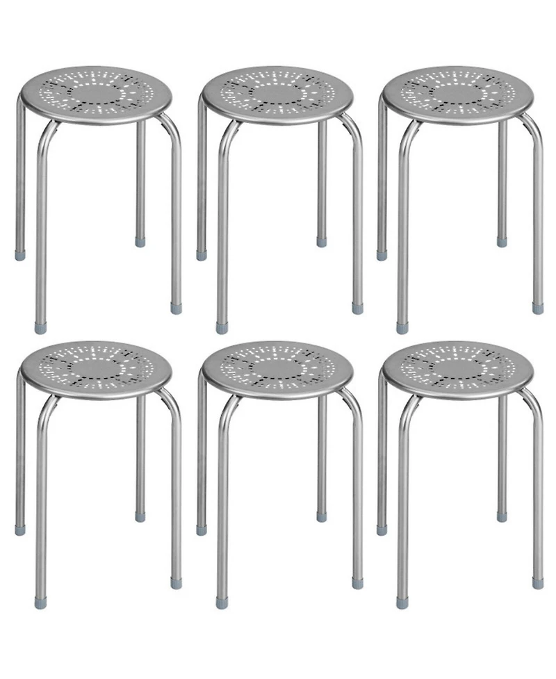 Add a playful yet functional seating option to any room with this six-piece set of powder-coated metal stools featuring a charming daisy pattern cutout on the seat. At 17.5 inches tall, each backless stool tucks neatly under a counter, craft table, or kitchen island when not in use, and the stackable design lets you store all six in a single vertical column. Non-marking rubber feet protect flooring while a damp cloth is all you need to keep the glossy finish spotless indoors or out.