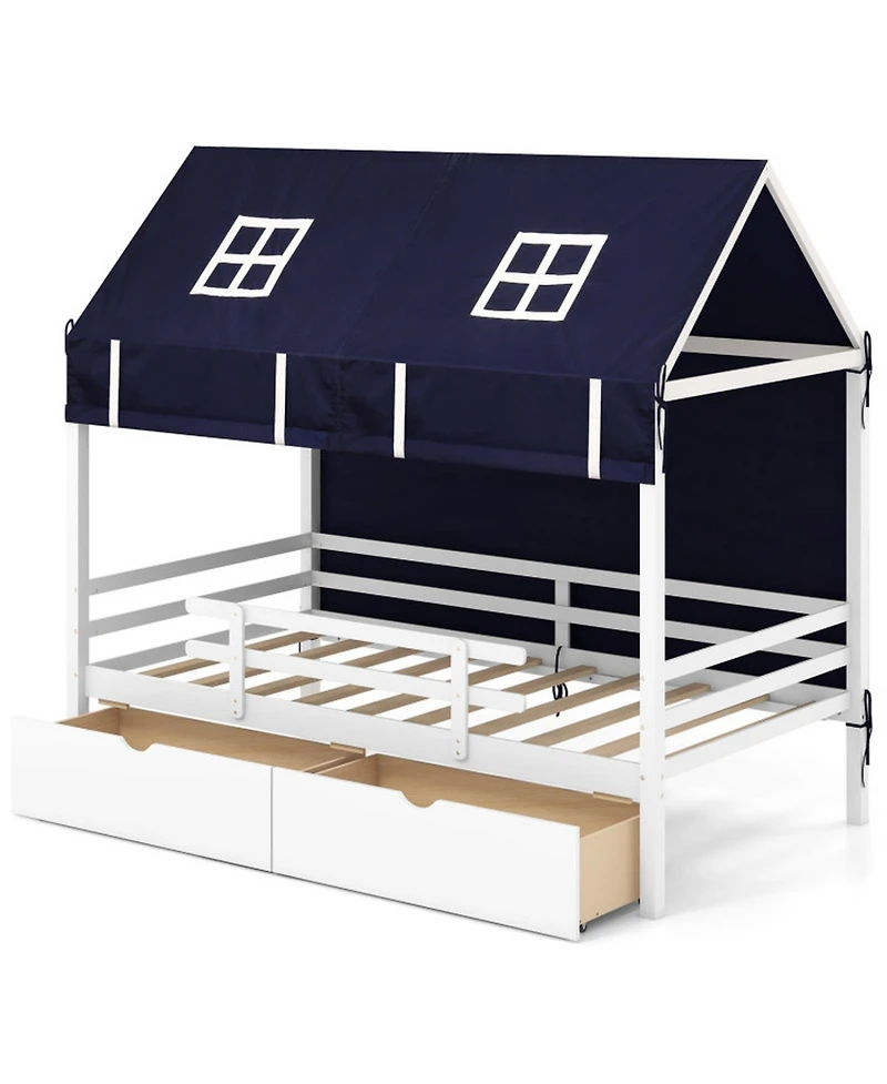 Gouun Twin House Bed with Removable Tent Canopy and 2 Rolling Storage Drawers