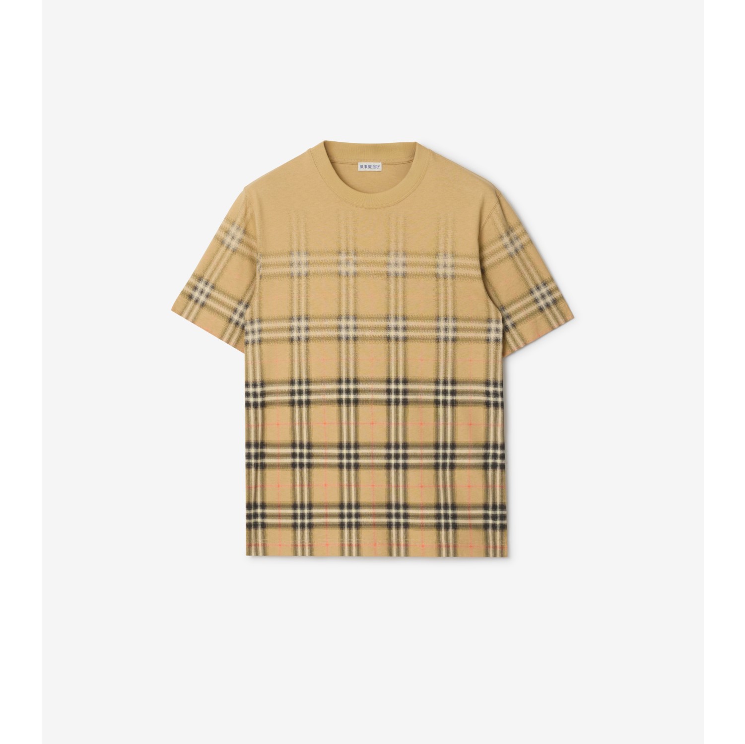 Gradient Check Cotton T-shirt in Sand beige - Men | Burberry® Official