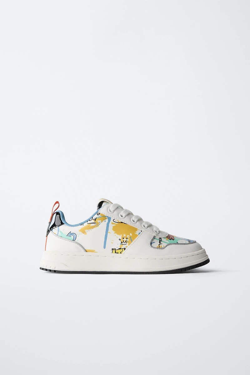 Skater-style sneakers with graffiti details. Adjustable lace-up closure. Flexible insole. Rubber sole.