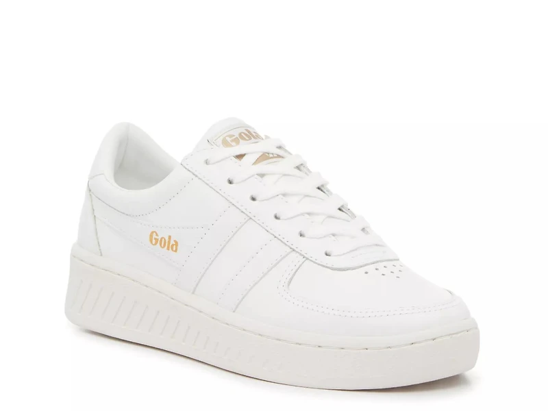 Bring a sporty touch to casual fits with the Grand Slam sneaker from Gola. This low-top sports a monochromatic hue that is meant to match easily with fave ensembles. Complete with perforated details on the toe and stitched stripes.