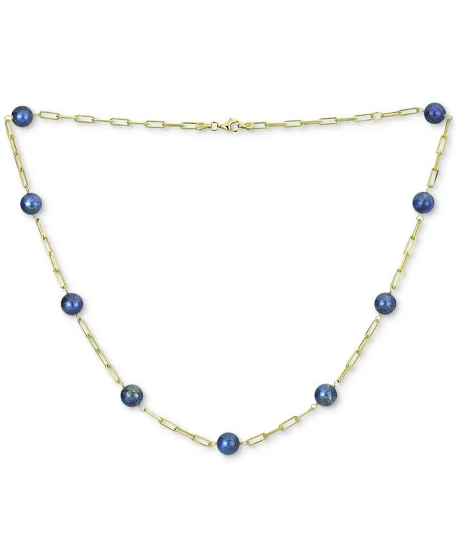 Green Jade Bead Paperclip Link Collar Necklace Gold-Plated Sterling Silver, 18" + 2" extender, (Also Onyx)