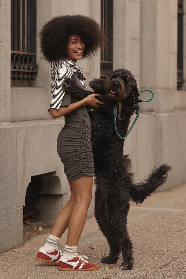 Grey Lab Short-Sleeve Ruched Knit Mini Dress