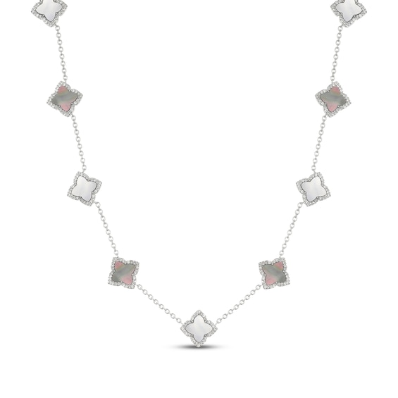 STUDIO BY KAY Clover-Shaped Mother-of-Pearl & White Lab-Created Sapphire Necklace Sterling Silver 18"