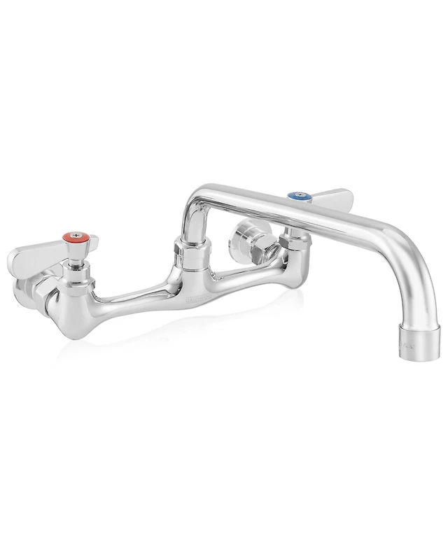 Gridmann Commercial Wall Mount Sink Faucet, 8" Center with 12" Swivel Spout, Nsf, Dual Lever Handles, Brass Construction, Chrome Polished Fi