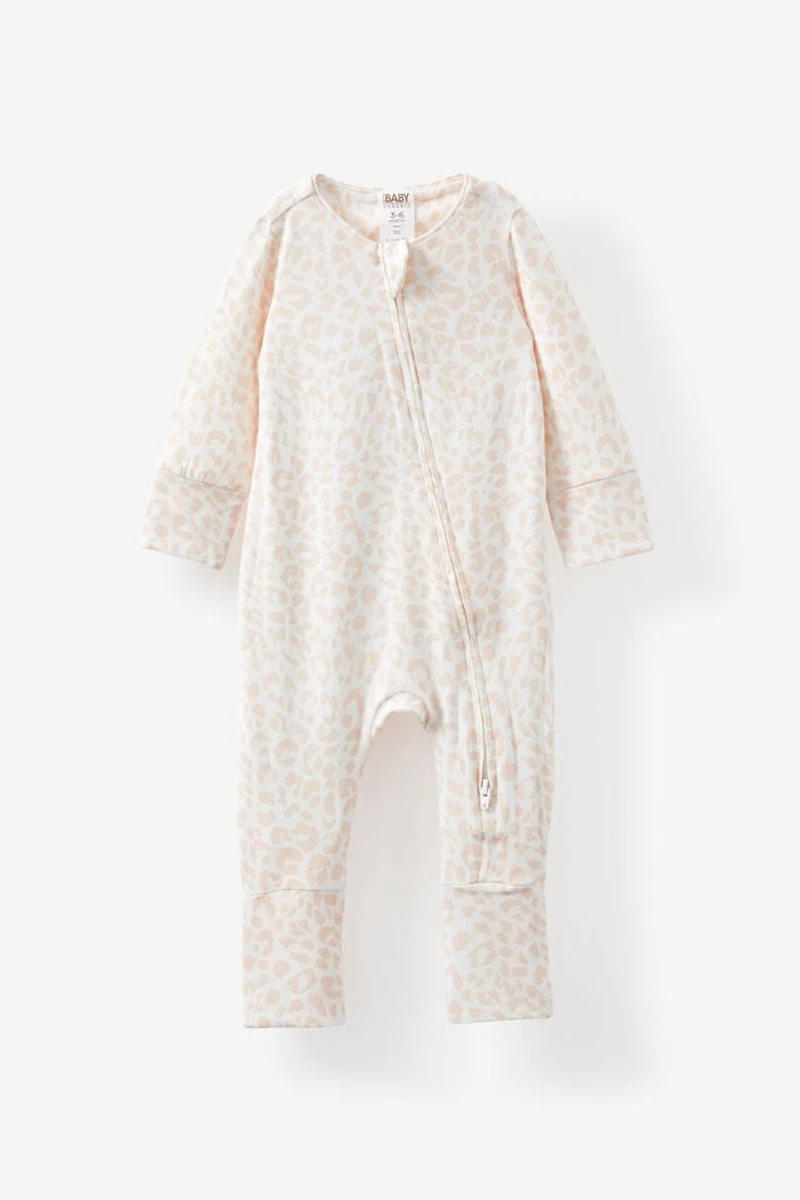 Built for both the busy days and sleepy nights. The Billie Long Sleeve Zip Romper keeps things easy with a two-way zip for quick nappy changes, fold-back foot muffs to keep toes toasty, and turn-back mittens for tiny hands. Made from lightweight cotton with a relaxed feel that's soft against baby skin. The design gives extra room for comfort and easy changes, while the protective zip tab keeps delicate skin safe. Perfect for cuddles, pram life, and everything in between.