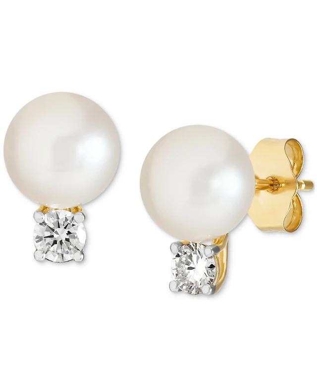 Cultured Freshwater Pearl (9mm) & Diamond (1/10 ct. t.w.) Stud Earrings in 14k Gold