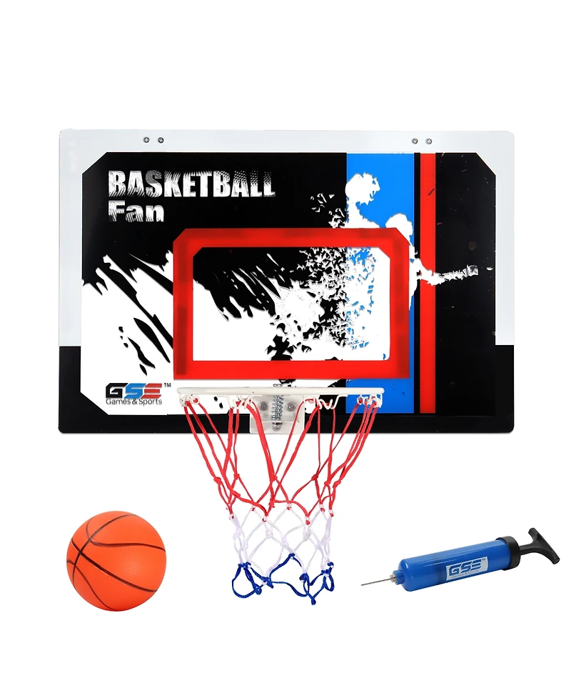 The basketball set comes with a basketball backboard measuring 24"" x 16"", a hoop system with a net, a 5.5"" Pvc basketball ball, a mini pump with needle, instructions, and assemble tools, easy to assemble in a few minutes. The basketball game set has a spring-action breakaway steel rim for real slam dunks, and the maximum angle is up to 45 degrees, with a trichromatic basketball net. The spring will instantly bounce the rim back into place once you make the shot, giving every player an authentic basketball experience. It is great for basketball training, education, office, and basketball lovers.