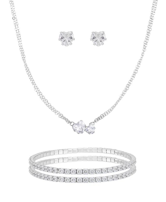 Guess 3-Pc. Cubic Zirconia Gold-Tone Heart Necklace, Stud Earrings, and Bracelet Gift Set