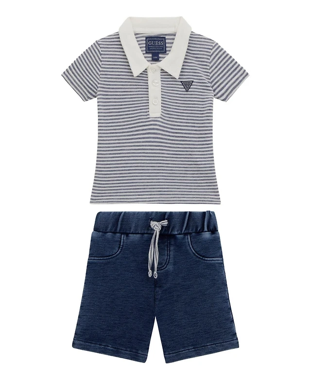 Guess Baby Boys 2-Piece Yarn Dye Piquet Polo and Knit Denim Short Set