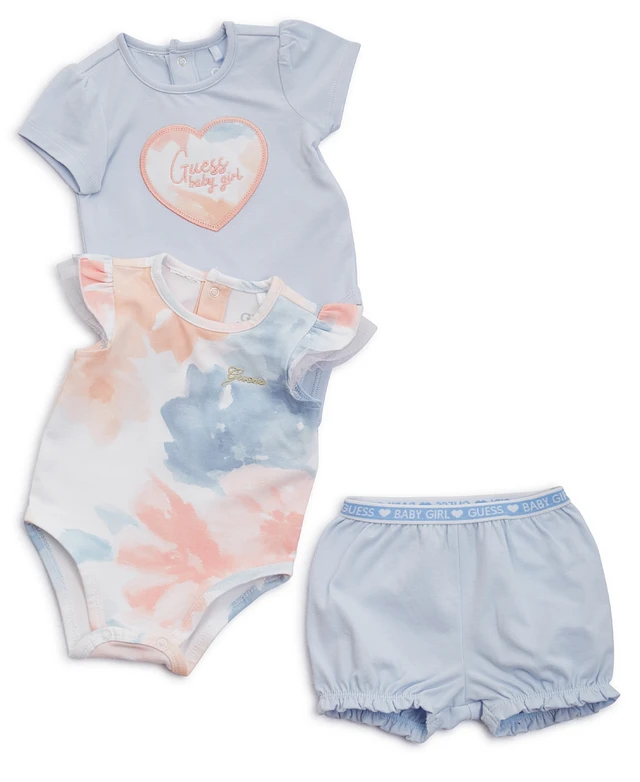 Guess Baby Girls Two Short Sleeve Bodysuits and Corresponding Shorts, 3-Piece Set