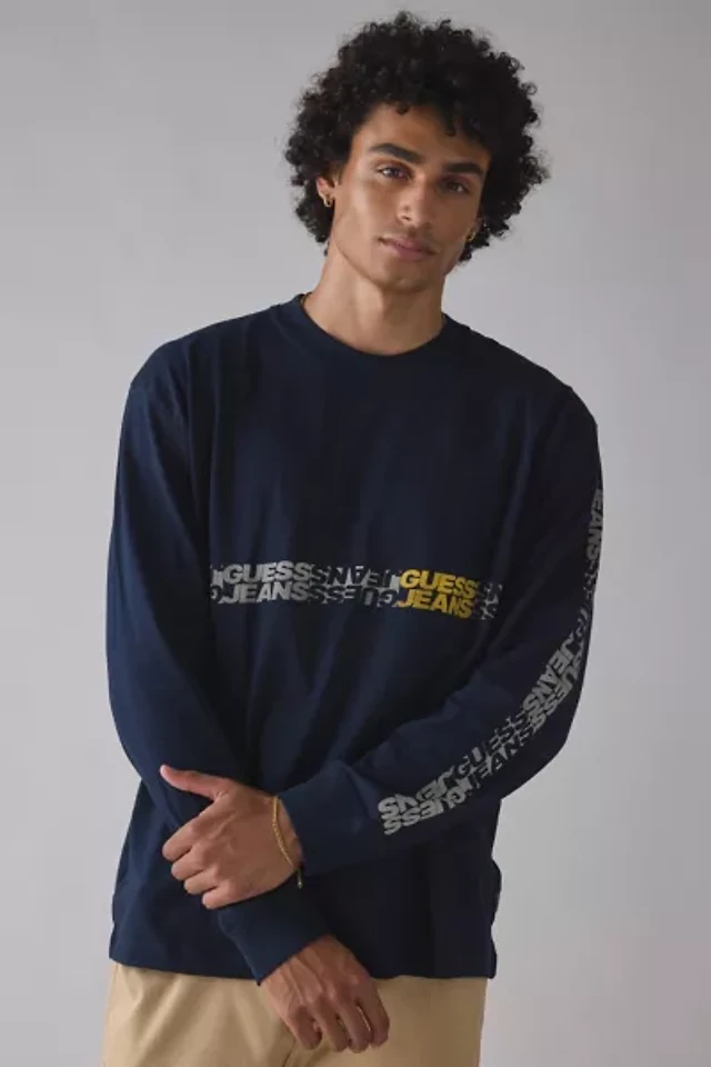 Guess Jeans Men's Relaxed Fit Vintage Long Sleeve Logo Graphic Sweatshirt