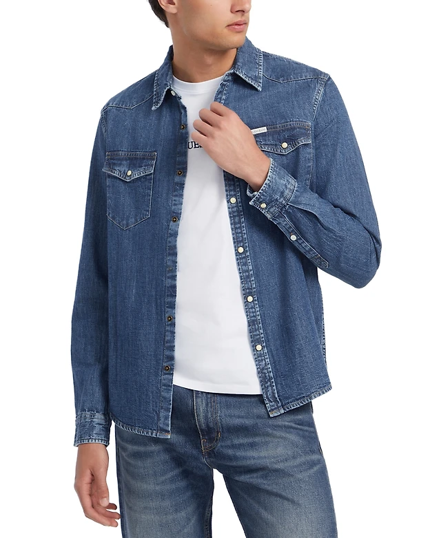 Guess Jeans Men's Slim-Fit Solid Button-Down Denim Shirt
