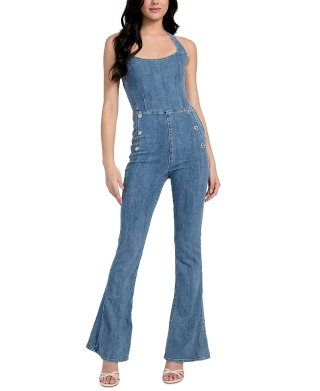 Guess Women's Blair Denim Halter Flared-Leg Jumpsuit