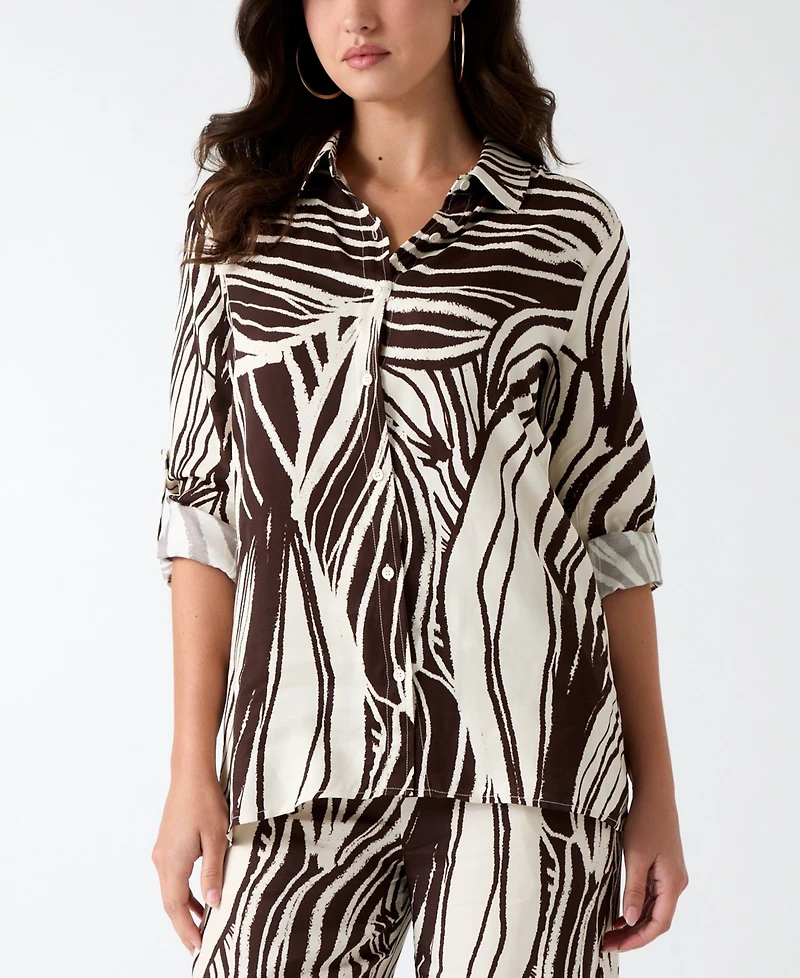 Rework modern shirting with this Guess shirt, crafted with a structured collared neckline and long-sleeves for a contemporary, polished look. The button-front closure creates a relaxed, elongated silhouette, while an abstract neutral-toned print adds subtle visual interest.