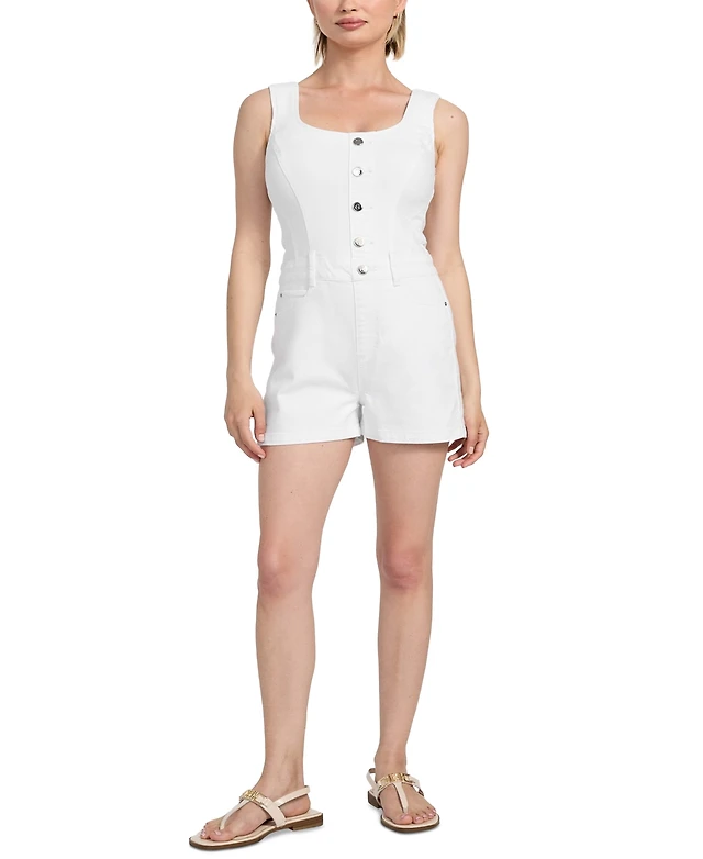Modenaire Women's Puff Sleeve Tie Front Romper