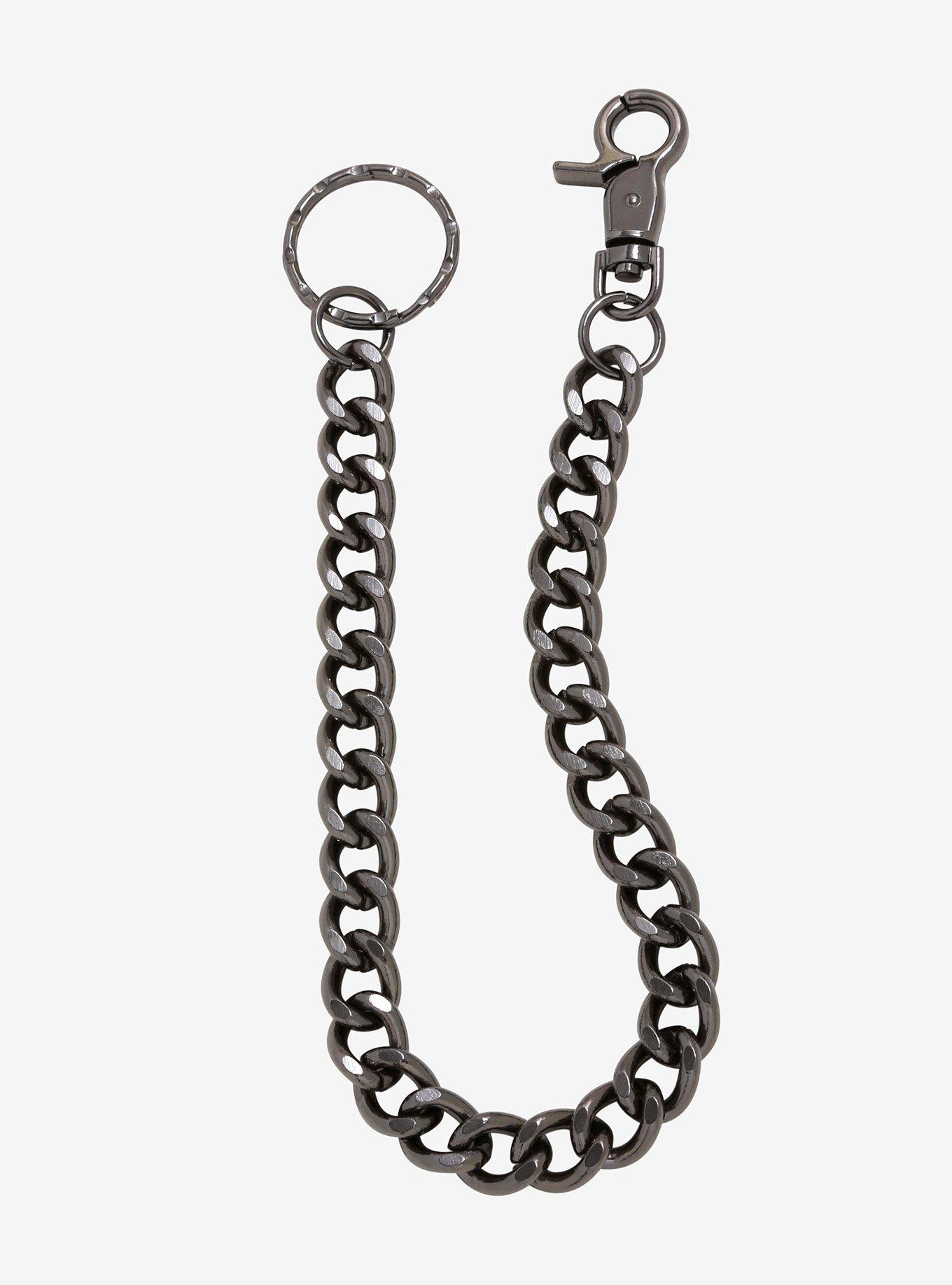 Basic gunmetal tone wallet chain with a lobster clasp at one end and a split ring on the other. Get attached and never lose your stuff!