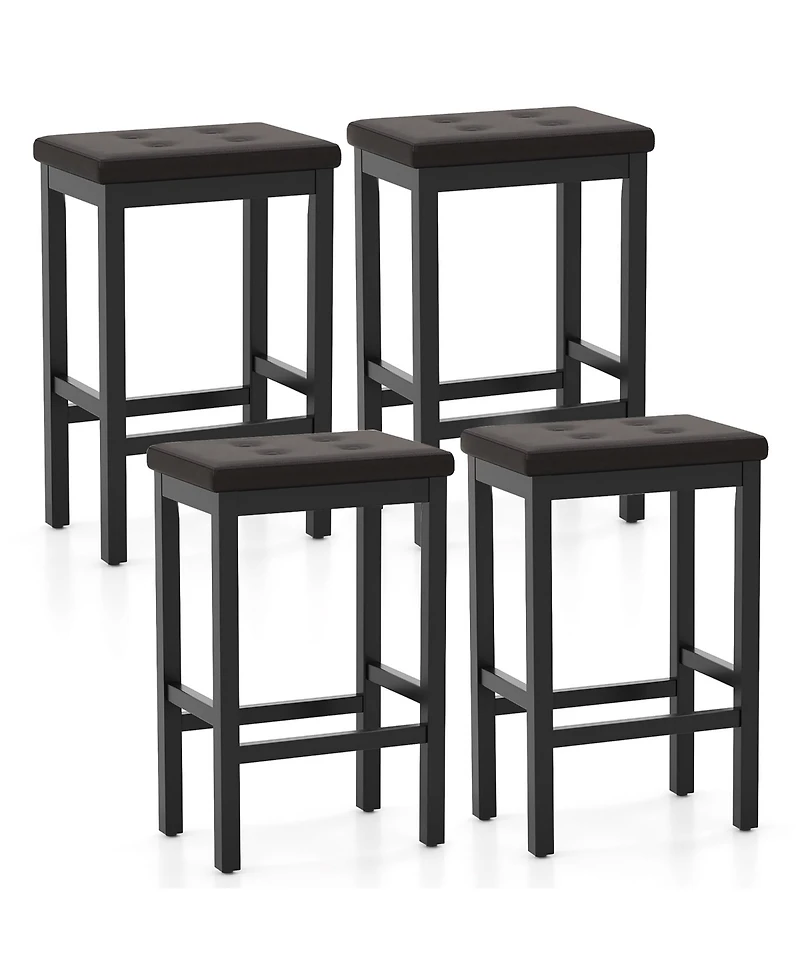 Gymax 24'' Upholstered Bar Stools Set of 4 Home Kitchen w/ Solid Wood Support Legs