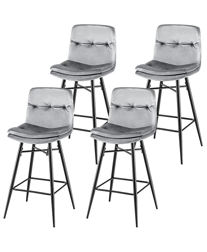 Enhance your dining experiences with our set of 4 bar height bar stools, perfect for intimate meals with your loved ones! These modern leisure chairs are upholstered in breathable and soft velvet fabric, ensuring a comfortable seating experience. The curved backrest and spacious seat, filled with high-density sponges, provide optimal support and comfort. Additionally, the footrests allow for a more relaxed sitting position. The heavy-duty metal frame ensures stability and durability, allowing you to sit safely and securely. With their modern design and tufted detailing, these bar height stools are suitable for various settings, including the kitchen, dining room, home bar, or coffee shop.Features:Soft and breathable velvet fabric cover for a luxuriously comfortable seating experienceHigh-density sponge filling for optimal cozinessPremium materials and sturdy connections guarantee long-lasting durability