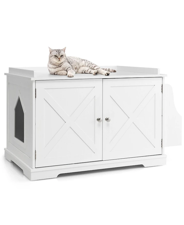 Aostirmotor Wooden Cat Litter Box Enclosure in White