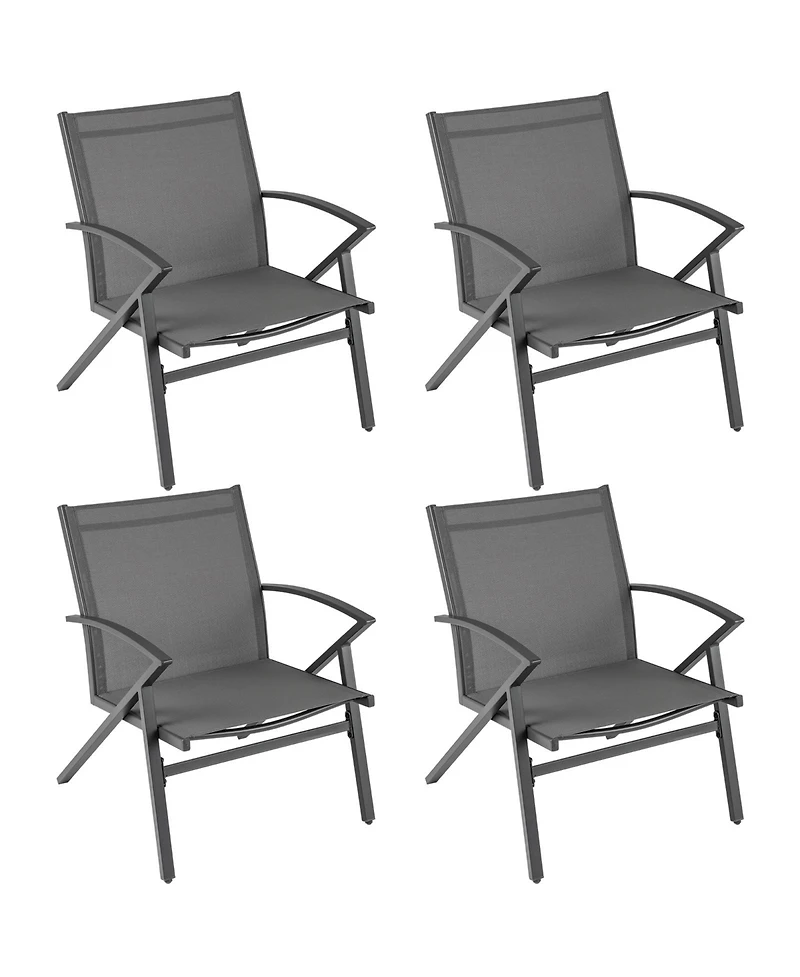 Gymax Patio Chairs 4 Pcs w/ Heavy Duty Metal Frame Curved Backrests & Armrests Outdoor