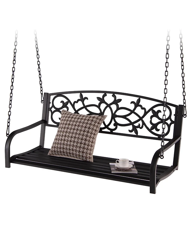 Gymax Patio Hanging Porch Swing 2-Person Outdoor Metal Swing Bench Chair w/ Chains