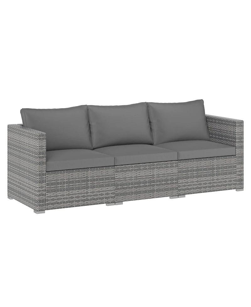Transform your outdoor space into a visually inviting retreat with this 3-piece outdoor sectional sofa set!This modular couch furniture set includes 2 arm sofas and an armless sofa, offering flexible layout options to suit any gathering. Crafted with hand-woven, mixed brown Pe rattan, it combines durability with a touch of style. The soft seat and back cushions filled with high-resilience sponge provide unmatched seating comfort, while the reinforced metal frame ensures reliable stability with a weight capacity of up to 400 lbs per sofa. Ideal as a patio furniture set for backyards, porches, balconies, or poolside lounging, this set adapts effortlessly to your lifestyle.Features:Refined mix brown Pe rattan for long-lasting durability and stylish appealSoft cushions with high-resilience sponge filling for superior comfortZippered cushion covers are removable and easy to clean
