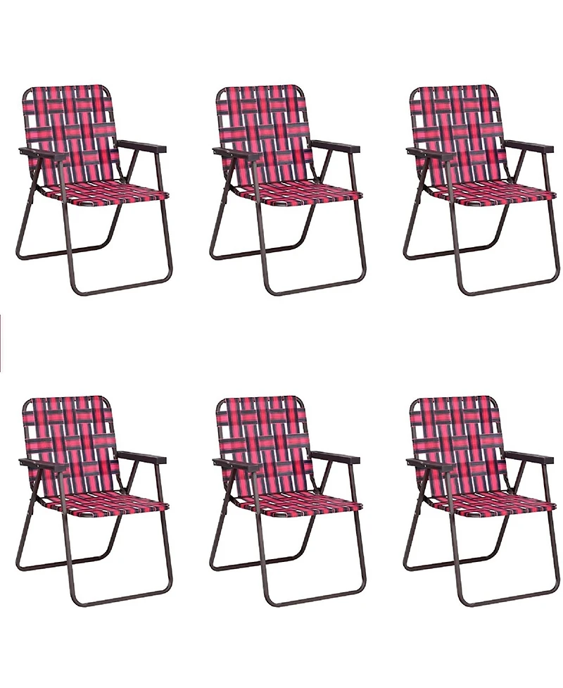 Gymax Set of 6 Patio Folding Web Chair Portable Beach Camping Red