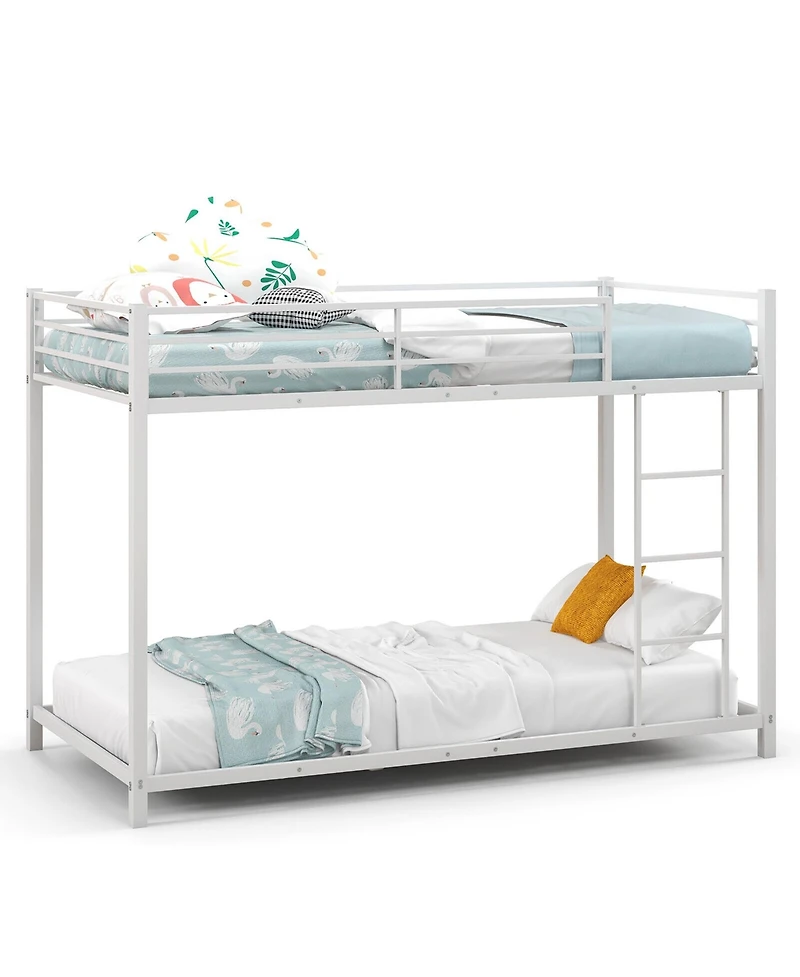 Gymax Twin Over Low Metal Bunk Bed with Ladder Guardrails for Teens Adults