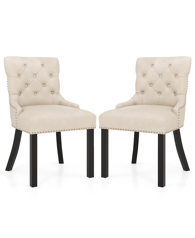 Gymax Upholstered Dining Chairs Set of 2 w/ Rubber Wood Legs Padded Seat Nailhead Trim Beige