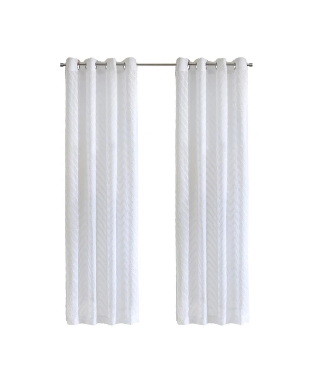 Habitat 100% Polyester Regina Sheer Chevron Delightful Textured Grommet Curtain Panel 52" x 63" White