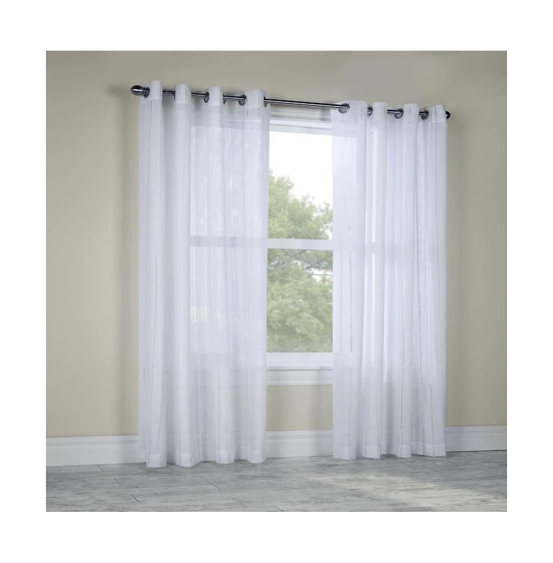 This collection by Habitat will beautifully frame your windows. Our designers have chosen a smooth textured boho-chic inspired sheer panel that will bring an element of allure to your home or office. The matt silver metal grommets in the header make them easy to hang and easily glide open and close to drape beautifully with precise even pleats, with maximum movement on your favorite decorative curtain rod up to 1 5/8"" in diameter. This full-width 52"" wide curtain helps you achieve the proper amount of fullness with less panels. With a length of 84 inches this curtain is best suited for rooms where you either need the curtain a few inches off the floor or are dealing with lower ceilings. Made from quality materials this curtain is long-lasting, easy to clean, and resists wrinkling.Sold as a single panel.