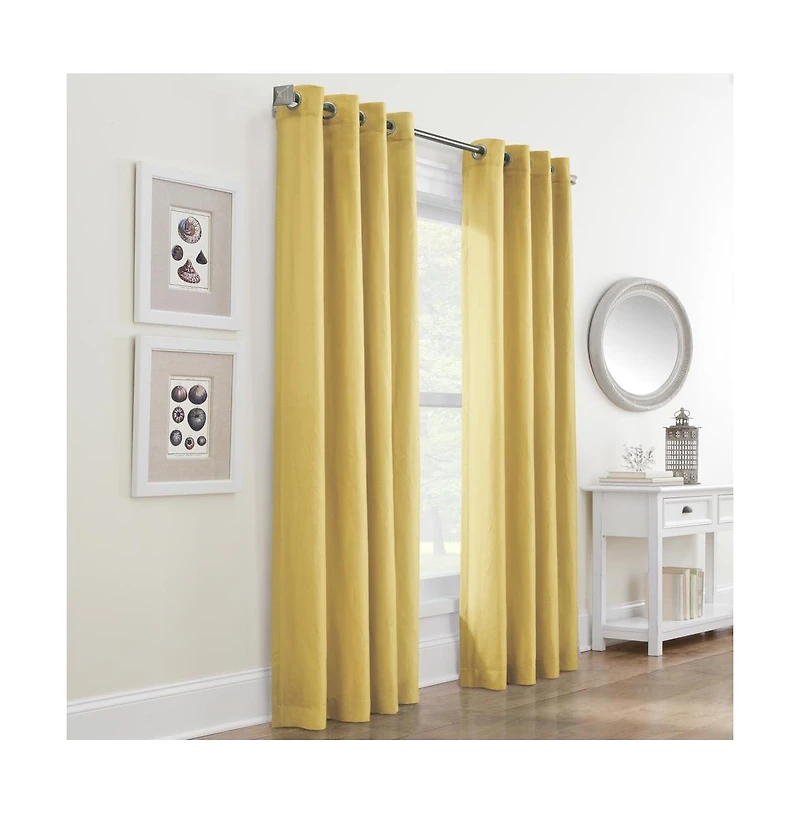 Habitat Harmony Light Filtering Crinkled Texture on Supple Drapeable Flowing Fabric Grommet Curtain Panel 52" x 63" Yellow