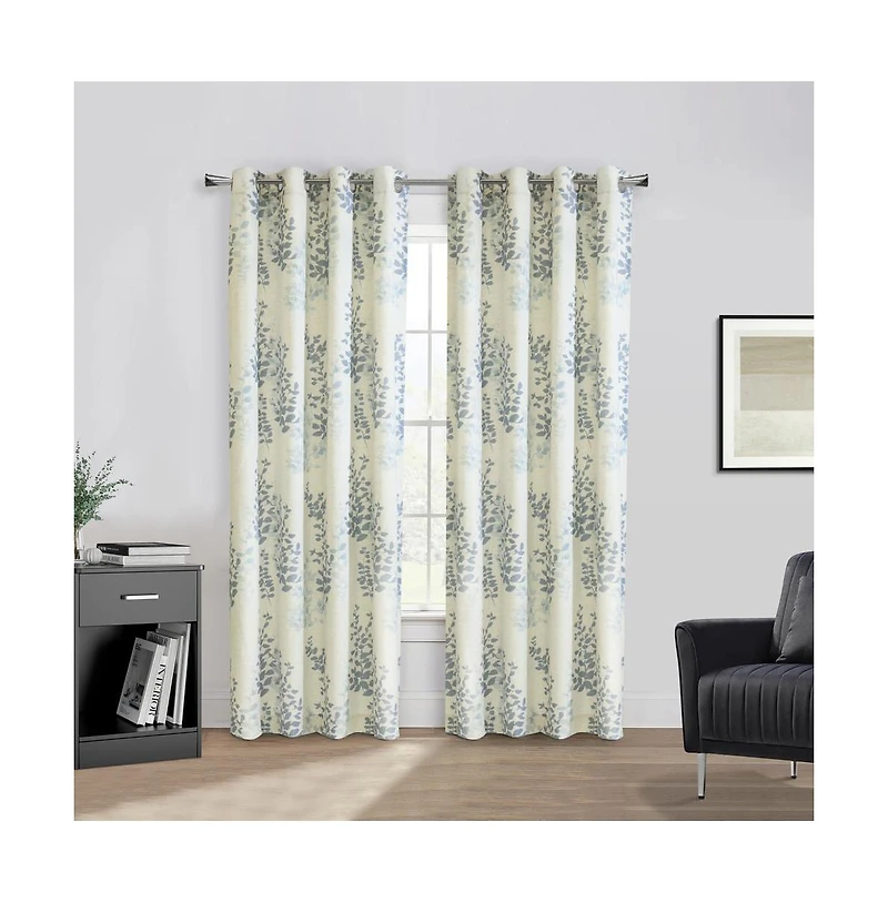 Habitat Lana Light Filtering Grommet Curtain Panel Two Tone Leaf Branches Bouquet Faux Linen Fabric Designed 50" x 108" Blue