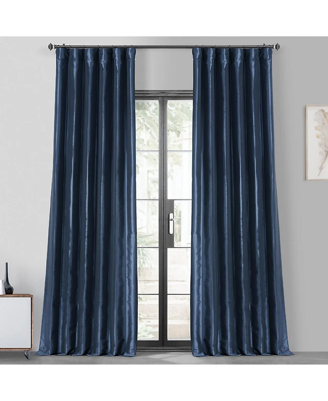 Half Price Drapes Navy Blue Faux Silk Taffeta Blackout Curtain