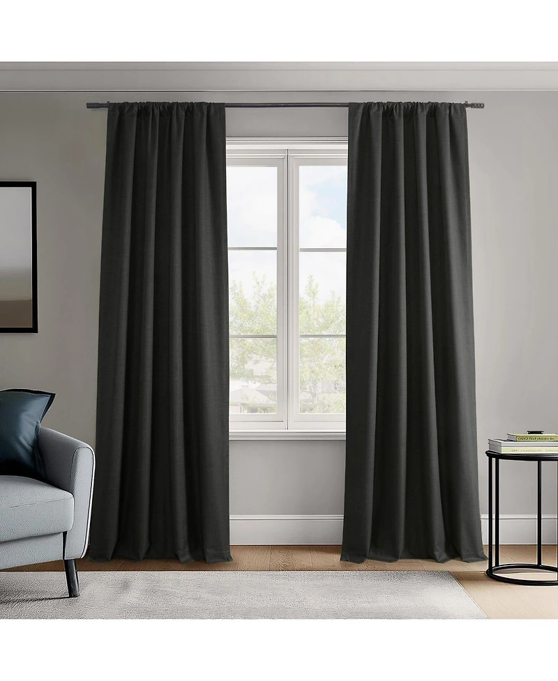 Introducing our Vienna Basic Linen-Look Blackout Curtains, crafted from 100% polyester with a beautifully textured linen-look fabric. These two-panel drapes offer timeless simplicity and modern functionality, featuring a minimalist, solid design that brings understated elegance to any space. The durable polyester material mimics the soft, natural appearance. The blackout lining provides excellent privacy and effectively blocks out sunlight, making these curtains ideal for creating a dark, restful environment—perfect for bedrooms, late sleep-ins, movie nights, or any room where light control is essential. Designed for versatility, each panel includes a rod pocket, hook belt, and back tab hanging options, allowing you to style them effortlessly with various curtain rods and hanging preferences. Suitable for bedrooms, living rooms, or any area that calls for stylish and functional window coverings.