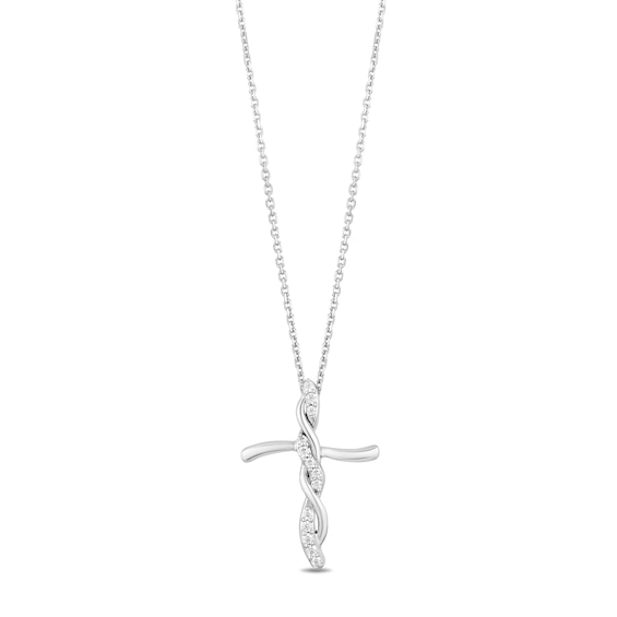 Diamond Twist Cross Necklace 1/15 ct tw Sterling Silver 18"