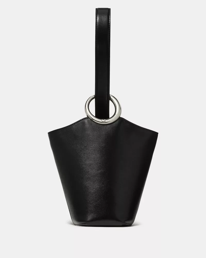 Our Halo collection is named for its unique ring-shaped hardware—an archival detail that dates back to Kate and Andy Spade's early days in business. This mini style can be worn four ways—a bucket bag or wristlet, over-the-shoulder or cross-body.
