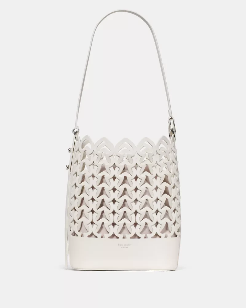 Our Halo collection is named for its unique ring-shaped hardware—an archival detail that dates back to Kate and Andy Spade's early days in business. This woven leather bucket bag features an adjustable shoulder strap, allowing you to go from crossbody to your shoulder in a snap.