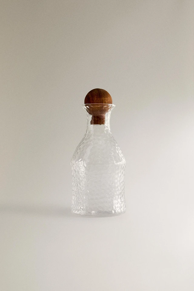 HAMMERED BOROSILICATE GLASS BOTTLE WITH WOODEN LID