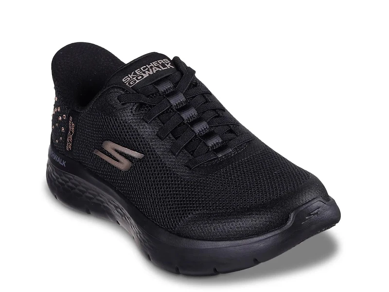 Bring some glitz to your active look with the Hands Free Slip-ins GO WALK Flex Krysta sneaker from Skechers. Designed with an exclusive Skechers Heel Pillow™, this Hands Free slip-on features a sparkly rhinestone-accented design, stretch laces, a Skechers Air-Cooled Memory Foam® insole, and lightweight ULTRA GO® cushioning that bring a well-rounded highlight to your closet.