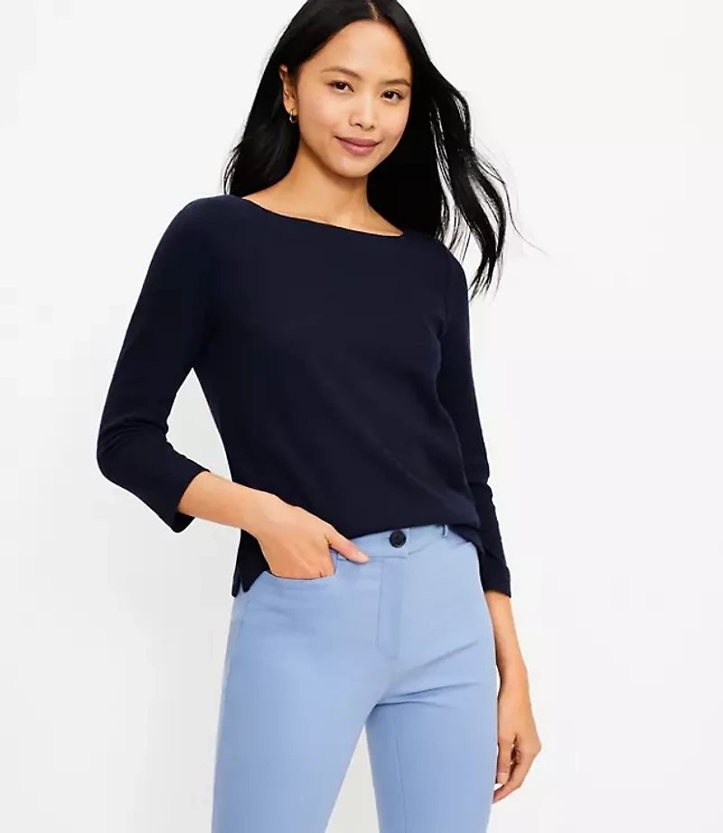 In heavier - weight 100% cotton slub: the tee just got an all - year round upgrade. Boatneck 3/4 sleeves. Side slits, Bullet1: 24"long, Fabric: Soft knit, Imported:, Fit: Classic follows your contours with a little room, Length: Abbreviated - hits at natural waist, Fabrication: 100% Cotton, Garment Care: Machine Washable Loft Harbor T - Shirt Size XS Black Women's by Loft Size Regular - XS Black Women's Crew, Neck 3/4, Sleeve Tees Tops Everyday 100% Cotton Machine Washable