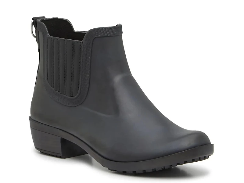 Elevate cloudy days with a style that is both functional and fashionable! The Harley rain boots from Chooka are crafted with must-have features including a waterproof rubber upper and a lug sole for extra traction. Complete with a cool Chelsea-inspired double panel design and a trendy block heel.