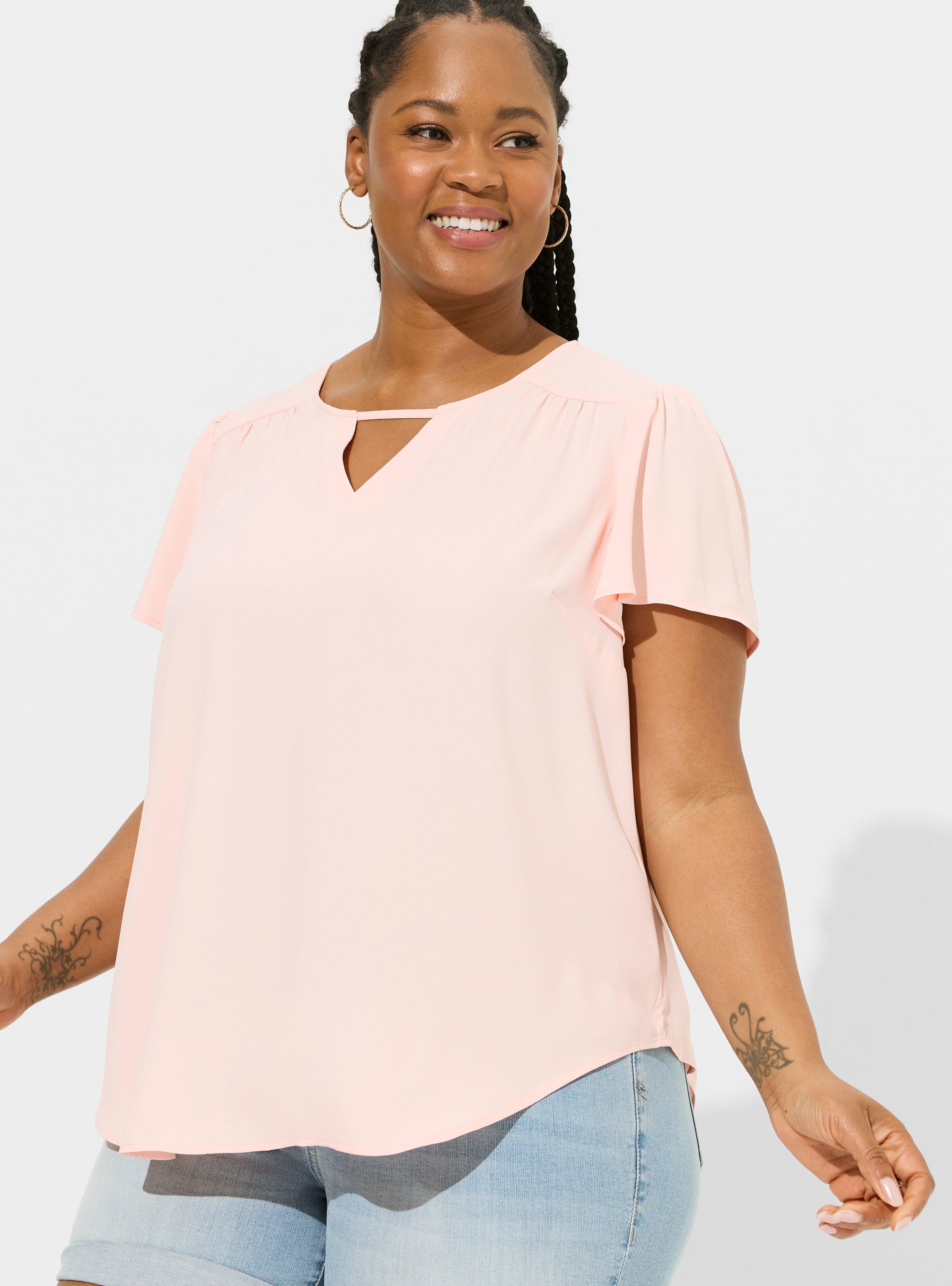 Harper Georgette Pullover Flutter Sleeve Blouse