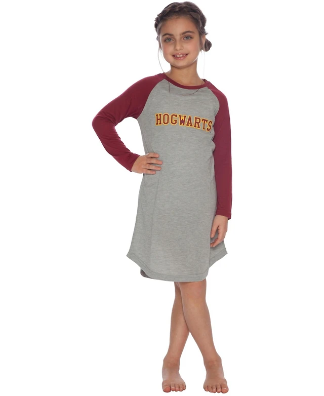 Harry Potter Big Girls Nightgown Long-Sleeve Raglan Varsity Pajama Sleepwear Loungewear