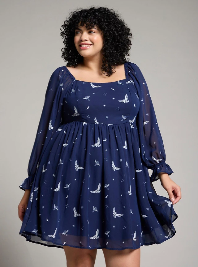 Harry Potter Hedwig Allover Print 3/4 Sleeve Plus Dress — BoxLunch Exclusive