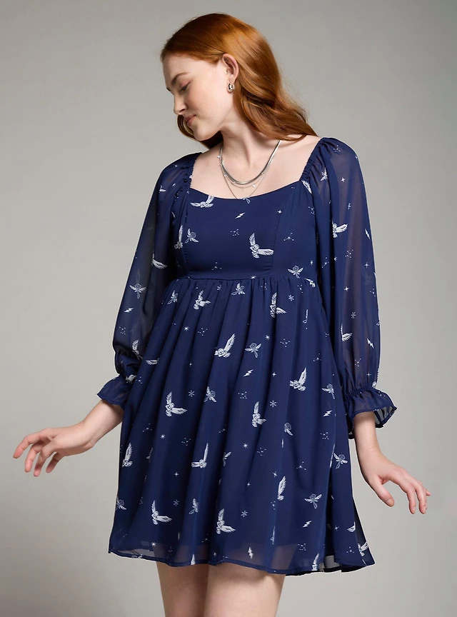 Harry Potter Hedwig Allover Print 3/4 Sleeve Plus Dress — BoxLunch Exclusive
